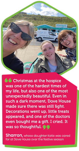 Christmas is a truly special time at the hospice. It’s a chance to create lasting memories for families, bringing comfort and warmth during a season that can be deeply emotional. From decorations and small surprises on the wards to festive outings and special treats, these moments are about more than celebration—they’re about connection, love, and the small experiences families carry with them long after they leave.
