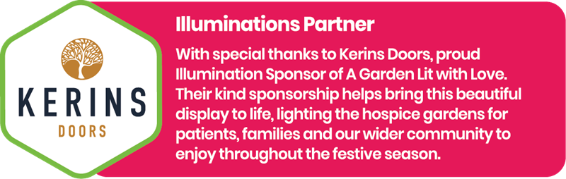 A Garden Lit with Love - a beautiful display of lanterns and Christmas lights shining brightly for patients, their families, and our entire community. For many of our patients, Dove House is where they will spend their final Christmas. Every moment is precious, and your support will help ensure that time is filled with warmth, dignity and love.
